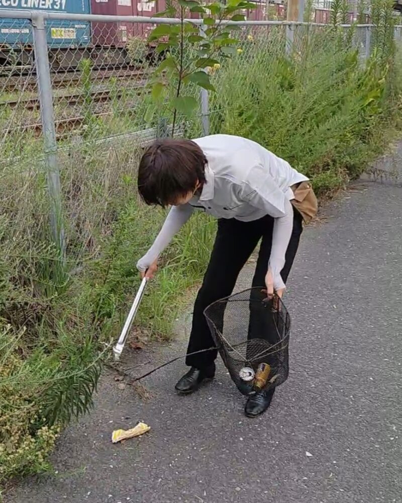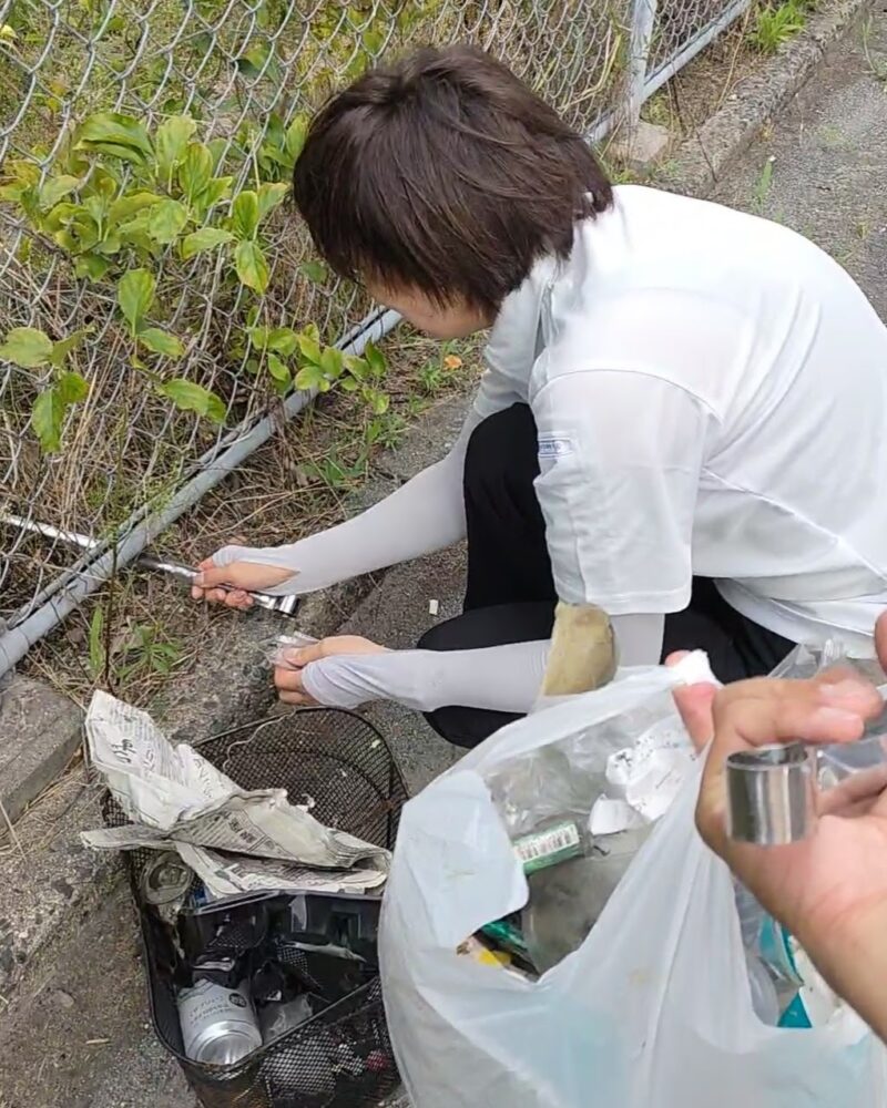 素手でゴミを集めてまわる💦